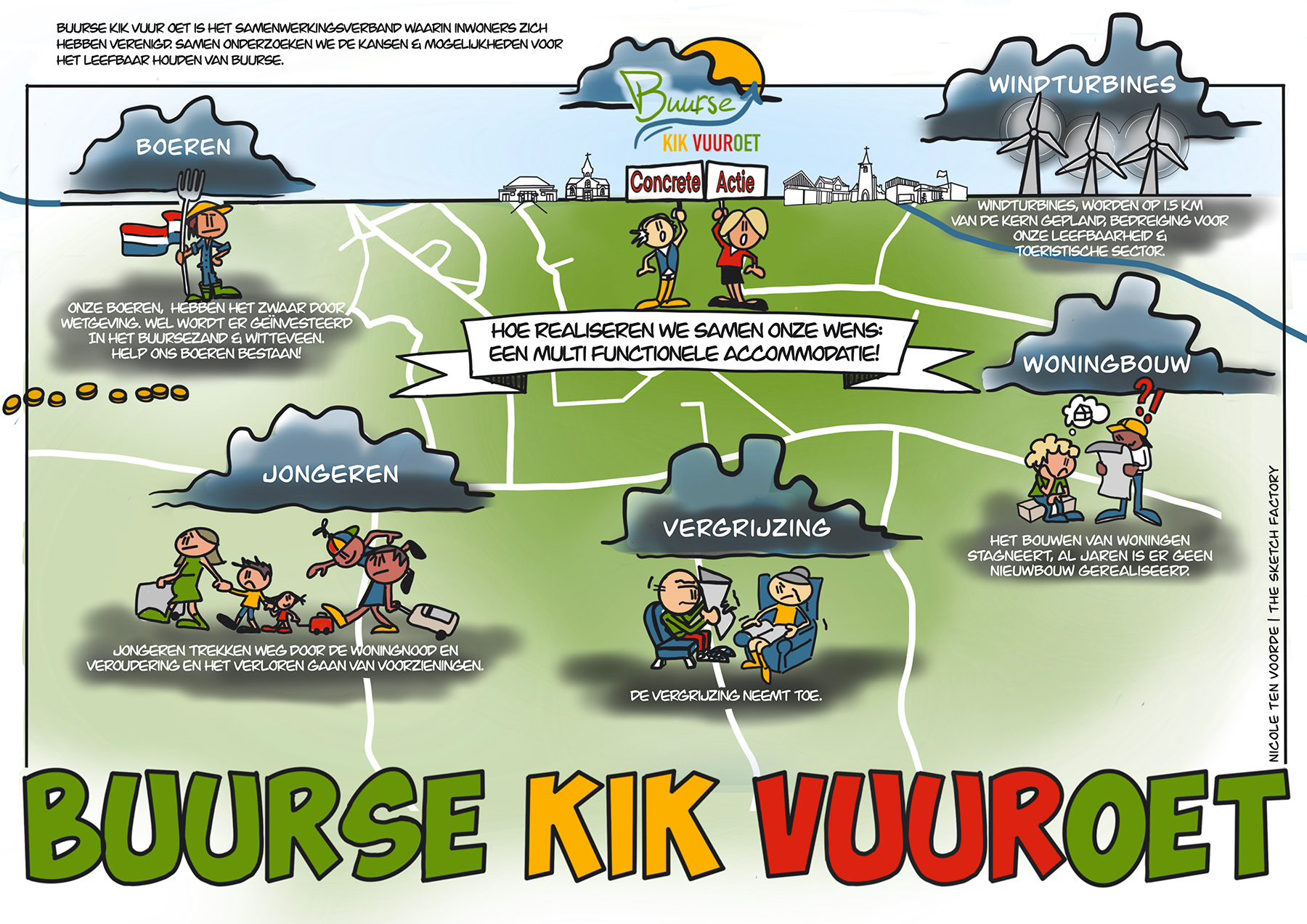 Er moet heel snel wat gebeuren voordat het te laat is want alles hangt met elkaar samen. Willen wij onze jeugd vasthouden dan zullen daar woningen voor beschikbaar moeten komen. Wanneer dat niet gebeurt heeft dat grote gevolgen voor de school maar ook de (sport)verenigingen. Als alle maatregelen die onze boeren op zich af zien komen niet wijzigen of stoppen heeft dat naast het verdwijnen van deze mooie en belangrijke sector grote gevolgen voor gelieerde en dienstverlenende bedrijven en de werkgelegenheid. Het welbekende domino-effect. De volle inzet van de SBB en de werkgroepen is om Buurse leefbaar te houden en daar waar nodig te versterken. Ook dat kunnen wij niet alleen maar gelukkig ervaren wij een toenemende bereidheid om als Buursenaren er gezamenlijk de schouders onder te zetten. Zoals vanouds!